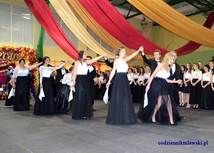 Z tej okazji hala gimnastyczna LO, zmieniła się w pięknie udekorowaną, utrzymaną w dostojnej tonacji żółto – bordowej salę balową. Maturzyści o godz. 19 rozpoczęli zabawę tradycyjnym polonezem, oraz poprosili do pierwszego walca nauczycieli i zaproszonych gości. Były wzruszające podziękowania dla wychowawców, nauczycieli i rodziców.