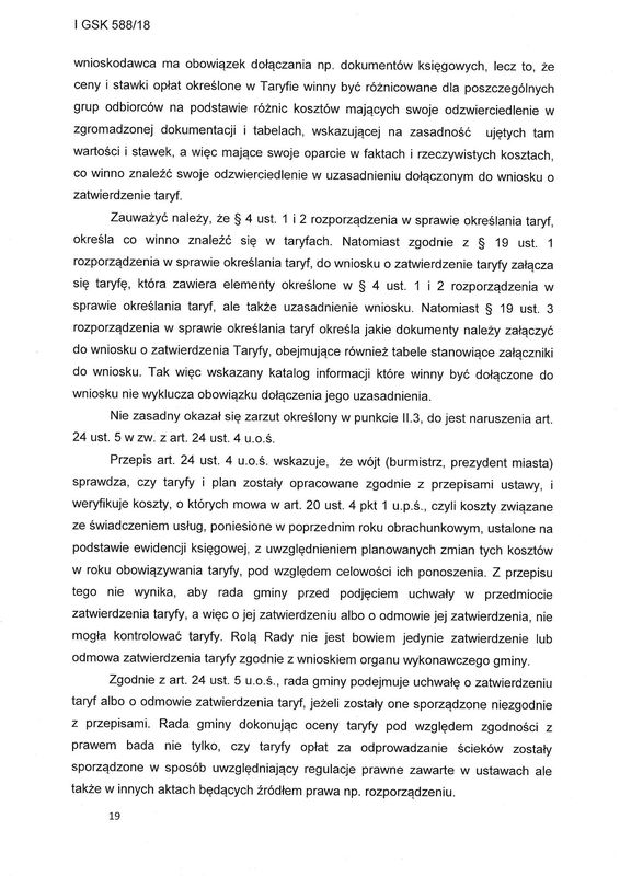 zatwierdzenie taryf nie zawierał właściwego uzasadnienia.