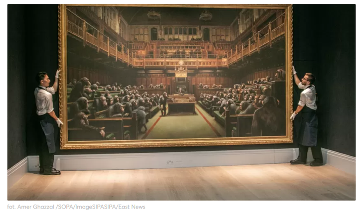 Ku sprawiedliwości jednak trzeba powiedzieć, że taką mówiąc oględnie nie najwyższą renomą „cieszą się” też inne parlamenty. No bo jak wytłumaczyć ostatni przypadek, gdzie ogromny obraz namalowany w 2009 roku przez Bansky’ego – anonimowego artystę, znanego przede wszystkim z graffiti malowanego w różnych częściach świata zatytułowany „Devolved Parliament” przedstawiający małpy człekokształtne, zasiadające w ławach brytyjskiej Izby Gmin sprzedał się po trwającej 13 minut licytacji na aukcji za prawie 9.9 mln funtów (około 48 milionów złotych)?
