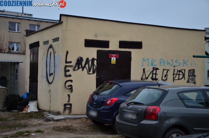 Naścienna twórczość sprayem to nie jest rzadki widok w miejskim krajobrazie. W kilku miejscach Mławy bez problemu znajdziemy mniej czy bardziej duże i skomplikowane grafiki lub napisy. Czasem nawet niosą one jakiś przekaz. Wyjątkową jednak niefrasobliwością popisuje się jeden z domorosłych malarzy – chuliganów, będący – sądząc po treści napisów – najpewniej fanem Legii Warszawa. Jego ulubionym miejscem są ściany budynków przy ulicy Broniewskiego i Matejki, a kolorem – kolor czarny.