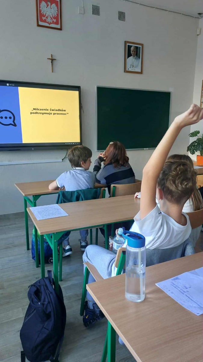 Podczas godzin wychowawczych uczniowie mieli okazję porozmawiać o tym, czym jest przemoc, jak jej przeciwdziałać oraz w jaki sposób reagować, gdy jesteśmy jej świadkami.