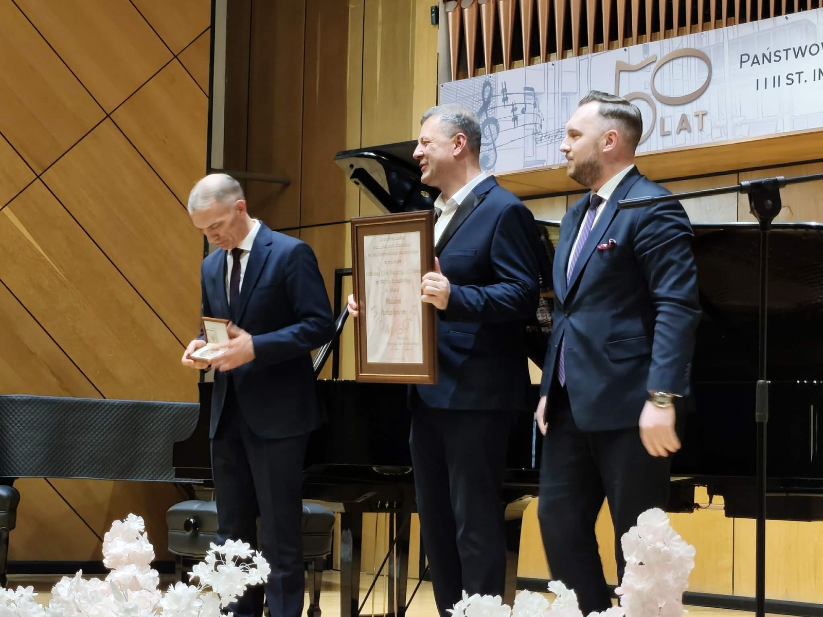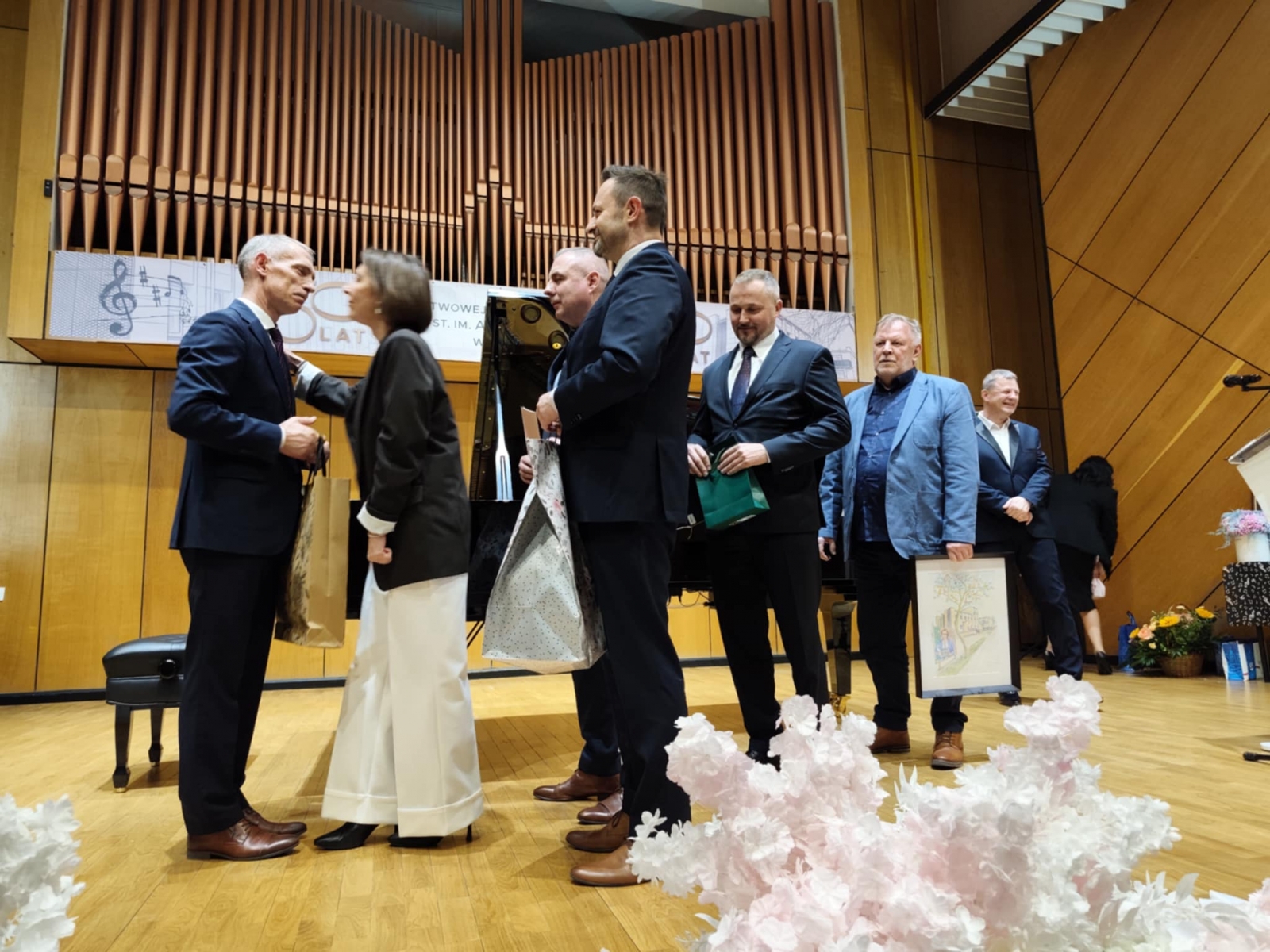 Nie zabrakło także gestów sympatii ze strony zaprzyjaźnionych instytucji. Dyrektorzy szkół muzycznych przekazali okolicznościowe upominki, a lokalny artysta Zdzisław Kruszyński podarował dyrektorowi Wilhelmowi Taraszkiewiczowi wyjątkowy obraz przygotowany specjalnie na jubileusz. W imieniu rodziców podziękowania złożyła Edyta Breńska.
