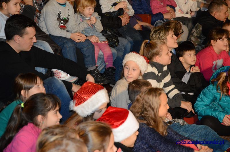 Potem nasi najmłodsi mławianie świetnie bawili się podczas spektaklu „Czy to Mikołaj?”. Aktorzy zaśpiewali z widownią piosenkę na powitanie Świętego Mikołaja, a złośliwa Baba Jaga nie zniechęciła go do odwiedzin mławskich dzieci oczekujących w sali kina.