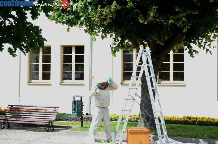 Pszczoły obsiadły lipę przy ratuszu