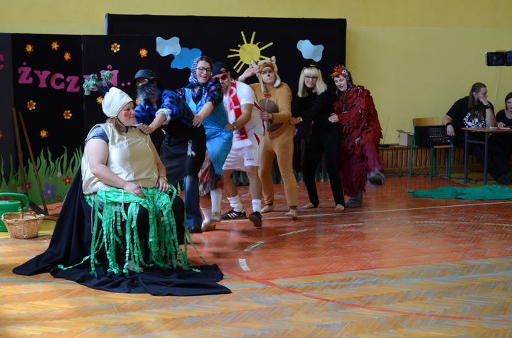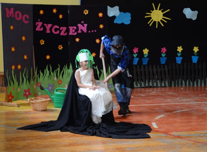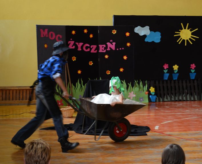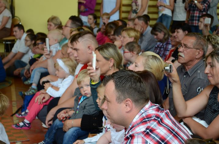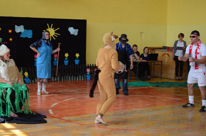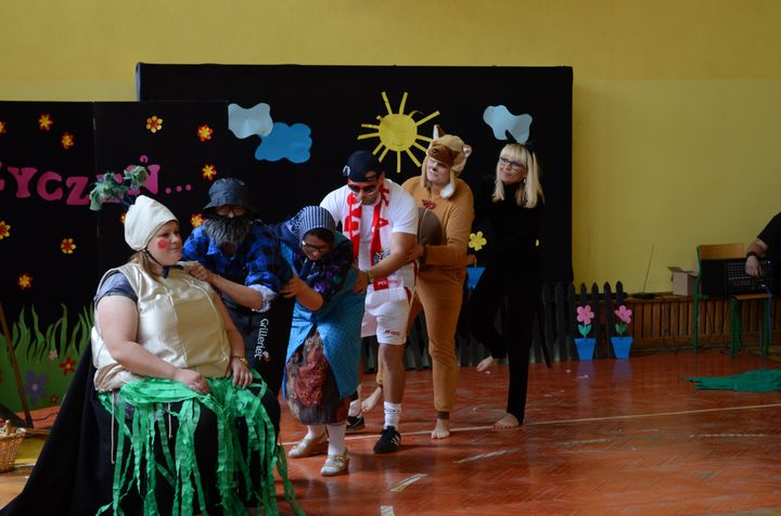 Znanemu większości z nas tekstowi popularnego wierszyka, towarzyszyły szaleńcze tańce bohaterów, pragnących dopomóc w wyrywaniu krzepkiej rzepki. Aktorzy odgrywający z fantazją swoje role, byli tak wspaniale ucharakteryzowani,  że znajdujący się na widowni rodzice, uczniowie i pozostali pracownicy szkoły mieli pewne kłopoty z ich rozpoznaniem. Po przedstawieniu scena należała już do dzieci, które nie mniej odważnie i żywiołowo odtańczyły dla swoich rodziców taniec country. Wszystkie występy nagradzano długimi i głośnymi brawami. Potem przyszedł czas na prezenty – świętujący ze swoimi pociechami rodzice i opiekunowie otrzymali medale Super Mamy i Super Taty. Na zakończenie uroczystości wszyscy zasiedli do słodkiego poczęstunku. Po ciastach pieczonych przez inicjatorki spotkania w domowym zaciszu pozostały tylko okruszki i to w mizernej ilości. Wspomnienia rodziców o tym dniu pozostaną w ich sercach na długo…