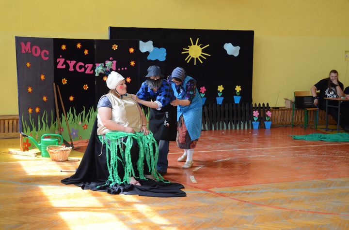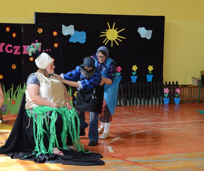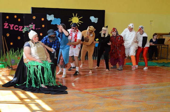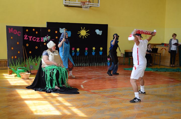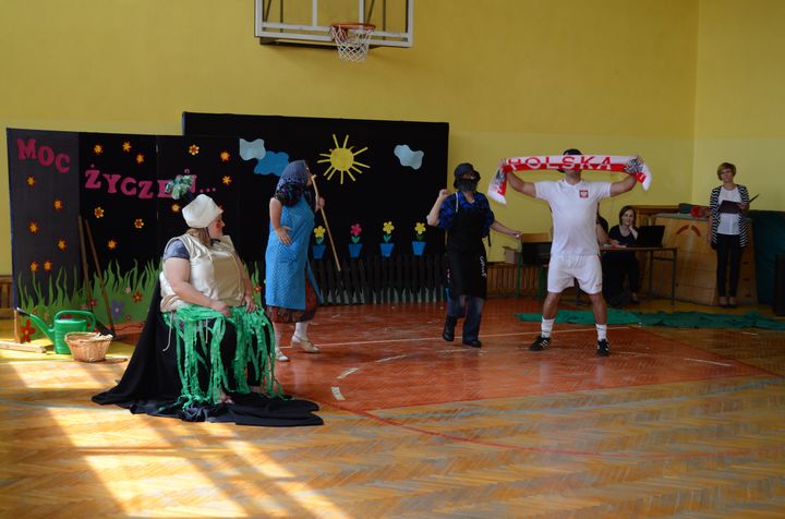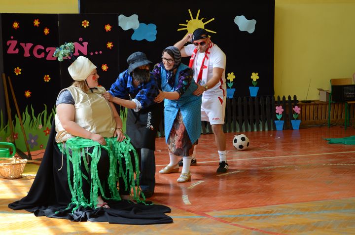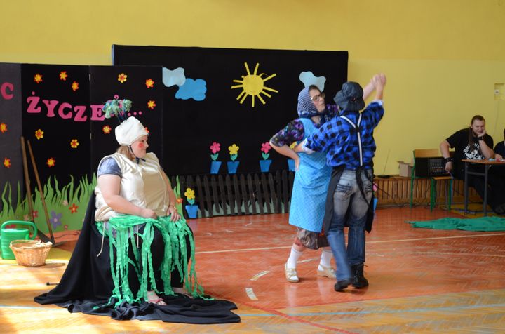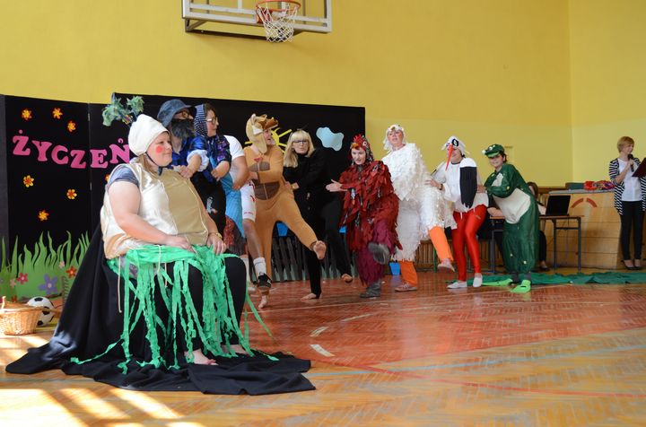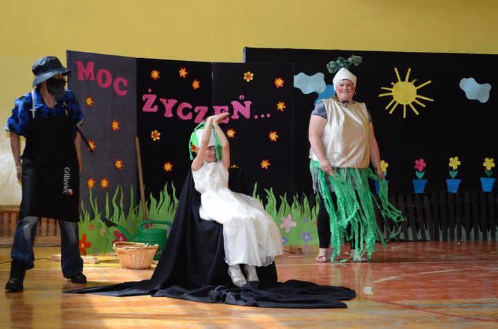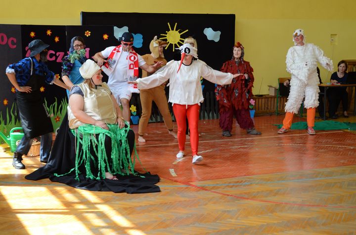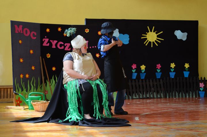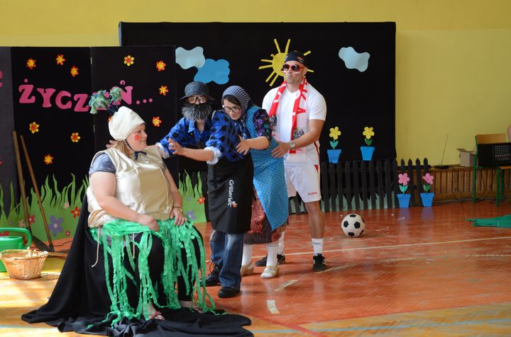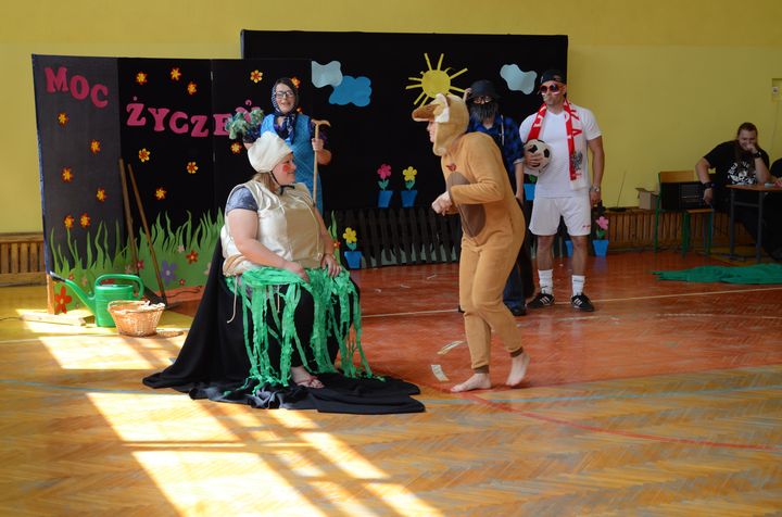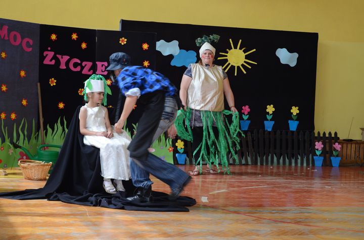 slider15 czerwca w sali gimnastycznej Specjalnego Ośrodka Szkolno-Wychowawczego odbyło się niecodzienne spotkanie. Z okazji Dnia Mamy i Dnia Taty w szkole pojawili się rodzice uczniów. Po przemiłym powitaniu, obejrzeli brawurową inscenizację utworu „Rzepka” Juliana Tuwima w wykonaniu nauczycieli, pracowników obsługi oraz małej Emilki-jednej z uczennic.