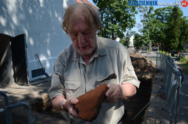– Sytuacja polityczna na pograniczu mazowiecko – pruskim wskazywałaby na to, że musiał powstać łańcuszek punktów strażniczych. Zobaczymy, czy potwierdzi się hipoteza, że z racji ukształtowania terenu taki punkt był właśnie tu. W tej chwili na głębokości ok. 60 cm znajdujemy pojedyncze skorupy z XV- XVI w., jak choćby fragment posadzkowej cegły datowany na XVI w. A z wykopem chcemy zejść do warstwy kulturowej na głębokości 1,6 – 1,9 m – mówi Maciej Czarnecki.