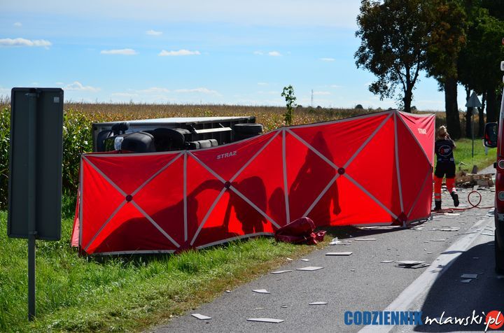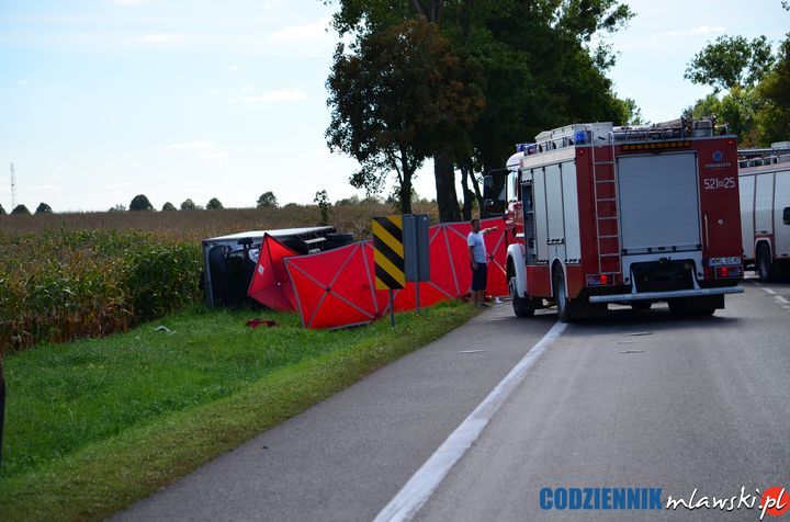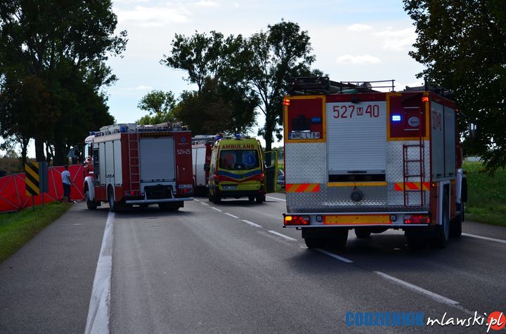 Na miejscu wypadku zginęła pasażerka samochodu osobowego marki Renault Thalia, natomiast kierowca tego pojazdu, 66- letni mieszkaniec Warszawy, z obrażeniami ciała został przetransportowany śmigłowcem pogotowia ratunkowego do szpitala w Płocku. Pozostali uczestnicy zdarzenia nie odnieśli obrażeń ciała.