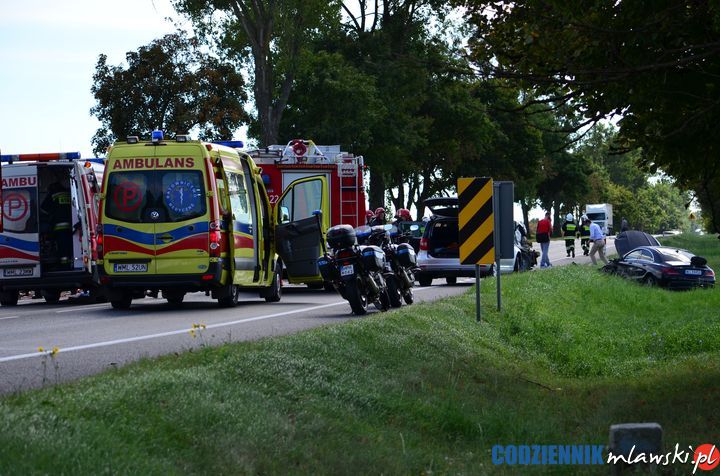 Jak wynika ze wstępnych ustaleń, kierujący samochodem dostawczym marki Renault Master, 20 – letni mieszkaniec pow. mławskiego, jadąc w kierunku Mławy, najechał na tył samochodu marki Renault Thalia, którym kierował 66- letni mieszkaniec Warszawy. W wyniku tego uderzenia, samochód osobowy uderzył następnie w tył pojazdu marki Iveco Daily, który wypadł z drogi i wywrócił się. Dostawczym iveco kierował 23- letni mieszkaniec pow. gliwickiego. Kierowca dostawczego renault, który uderzył w tył samochodu osobowego, zjechał na przeciwległy pas ruchu i zderzył się z samochodem osobowym marki Mercedes oraz pojazdem pogotowia ratunkowego marki Volkswagen Crafter. Kierujący mercedesem 44-letni mieszkaniec Wyszkowa, zjechał z drogi do rowu, natomiast pojazd pogotowia ratunkowego został jedynie lekko uszkodzony. W karetce znajdował się pacjent oraz personel medyczny, nikomu nic się nie stało.