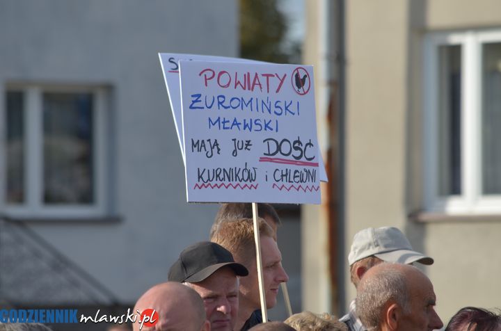 – Dlaczego my mamy mieć tylko kurniki. Dlaczego ludzie powiatu żuromńskiego i mławskiego mają żyć w smrodzie? Dlatego, że tu były kiedyś dobre układy z władzami?. Celowo wybraliśmy niedzielę po południu aby zwrócić uwagę na problem jak największej ilości warszawiaków. Po pierwszym proteście nie miałem żadnego odzewu od władz. Na rozmowy jesteśmy otwarci. W Mławie czy w Żurominie możemy zrobić jakiś kongres, niech przyjadą z ministerstwa rolnictwa, ochrony środowiska, przyjadą drobiarze, będą stowarzyszenia, powiemy swoje racje, a rząd niech rozsądzi – mówi Maciej Jankowski organizator protestu.