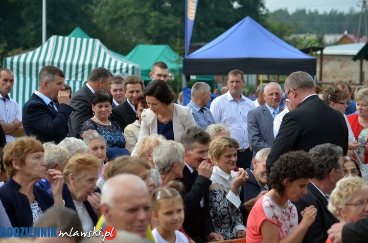 Część oficjalną rozpoczęła prezentacja misternie wykonanych z użyciem zbóż, roślin i owoców wieńców dożynkowych z sołectw z terenu gminy. Wśród nich znalazły się wieńce z sołectw Chmielewko, Długokąty, Grzybowo, Grzybowo – Kapuśnik, Kuklin, Kulany, Łęg, Pepłowo, Uniszki Zawadzkie, Wieczfnia Kościelna, Windyki, Zakrzewo Wielkie i Załęże. Po wniesieniu wieńców, wójt Jan Warecki w imieniu współgospodarzy dożynek proboszczów parafii Wieczfnia Kościelna ks. Sławomira Krasińskiego i parafii Grzebsk – ks. Krzysztofa Dziadaka powitał gości przybyłych na to wspólne świętowanie. Wśród nich znaleźli parlamentarzyści, władze samorządowe powiatu i  gmin, szefowie urzędów i instytucji administracji rządowej i samorządowej mających siedziby na terenie powiatu, dyrektorzy szkół, przedsiębiorcy.