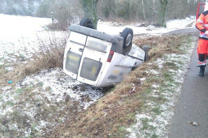 Dzisiaj około godziny 13:38 straż pożarna otrzymała zgłoszenie o wypadku na drodze pomiędzy Szreńskiem a Garkowem. Wiadomo, że osobowy opel combo wypadł z drogi i dachował. Kierował nim 21-letni mężczyzna.