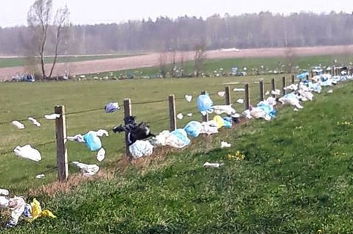 I rzeczywiście, na fotografiach widać całe pola zasłane różnego rodzaju odpadami foliowymi. Niesione przez wiatr, zatrzymywały się na ogrodzeniach pastwisk, a nawet na parkanie cmentarza.