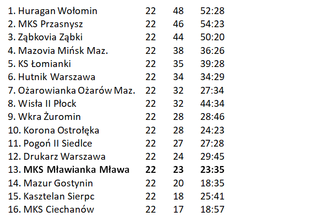W rundzie wiosennej Mławianka jest groźna dla każdego przeciwnika. Także dla zespołów ze ścisłej czołówki. Potrafiła pokonać Mazovię Mińsk Mazowiecki, a w ostatnią sobotę kwietnia pokonała na wyjeździe KS Łomianki.