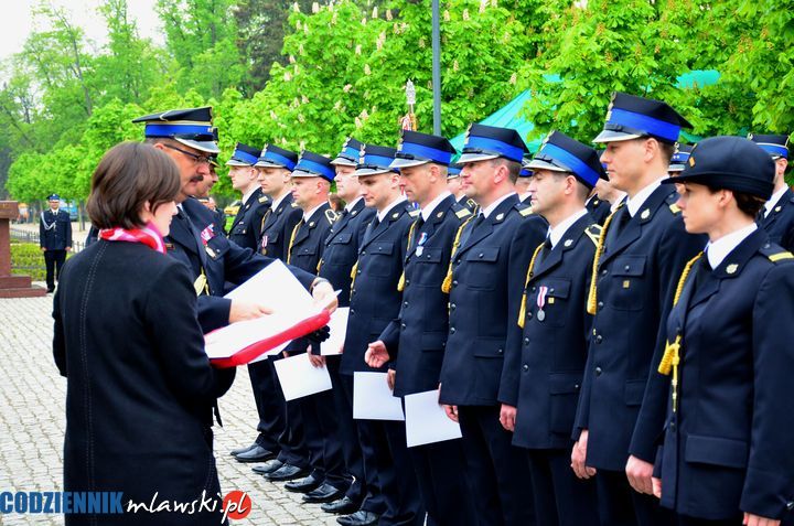 Wczorajsza uroczystość rozpoczęła się przemarszem w szyku do kościoła pw. Św. Trójcy, gdzie odprawiona została w intencji strażaków msza św. Stamtąd strażacy wraz z orkiestrą przemaszerowali do miejskiego parku pod pomnik  Józefa Piłsudskiego, gdzie odbyła się oficjalna część uroczystości. Wśród zaproszonych gości znaleźli się m.in. parlamentarzyści Jan Maria Jackowski oraz Anna Cicholska, przedstawiciel marszałka Konrad Wojnarowski, szefowie miejskich i powiatowych jednostek współpracujących ze strażą, bardzo licznie zjawili się także wójtowie. Komendę Wojewódzką Państwowej Straży Pożarnej reprezentował Zastępca Mazowieckiego Komendanta Wojewódzkiego st. bryg. mgr inż. Mirosław Jasztal, obecni byli równie kapelani strażaków: wojewódzki – ks. kpt Jerzy Sieńskowski oraz powiatowy – ks. Jerzy Piątek. Przy tej okazji poświęcone został najnowsze pojazdy mławskiej komendy: rozpoznawczy Volkswagen Amaroc, operacyjny Volkwagen Golf oraz aluminiowa łódź płaskodenna. Bardzo miłym akcentem było wręczenie strażakom okolicznościowych kartek przygotowanych przez dzieci.