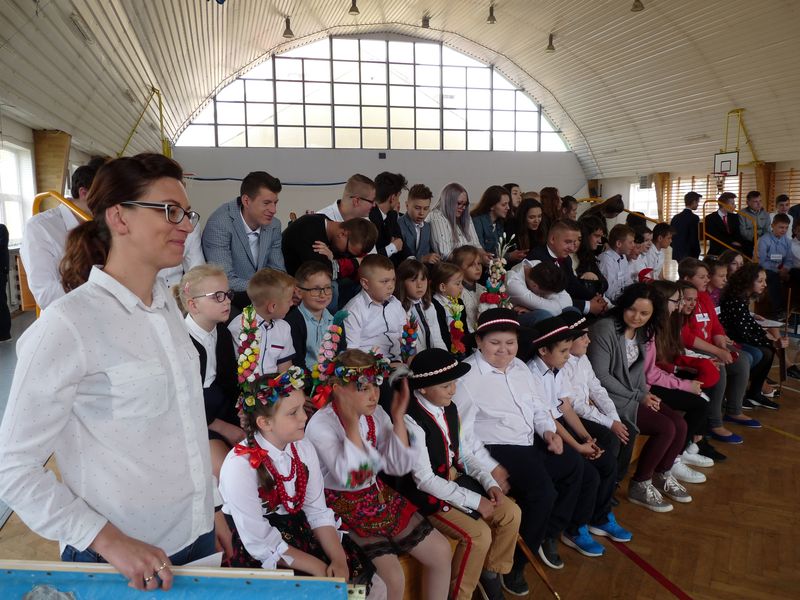 Uroczystość rozpoczęły przedszkolaki śpiewając hymn „Mazurek Dąbrowskiego” oraz prezentując pięknie wykonaną flagę narodową i godło. Następnie gimnazjaliści przenieśli widzów w odległe czasy ukazując inscenizację o powstaniu państwa Polskiego, czyli „ Legendę o Lechu, Czechu i Rusie”. Dziewczęta w biało- czerwonych strojach zatańczyły taniec narodowy – polonez. Uczniowie klas I-VIII pod opieką wychowawców w oryginalny i pomysłowy sposób prezentowali walory przyrodnicze i kulturowe Mazowsza, Kurpii, Kaszub, Dolnego i Górnego Śląska, Pomorza, Warmii i Mazur, Podhala, Małopolski, Wielkopolski, Lubelszczyzny i Podlasia.