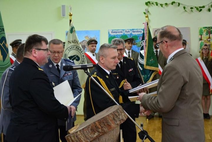Następnie uczestnicy wysłuchali wystąpienia Nadleśniczego Jaromira Skrzypeckiego, w którym przedstawił zaproszonym gościom wkład pracy leśników i Lasów Państwowych w odbudowę zasobów leśnych i rozwój gospodarki. Przybliżył charakter i trud pracy leśników. Nadleśniczy podziękował pracownikom za sumienność, zaangażowanie w pracę i profesjonalizm, którego efektem jest piękno polskich lasów i bogactwo przyrody.