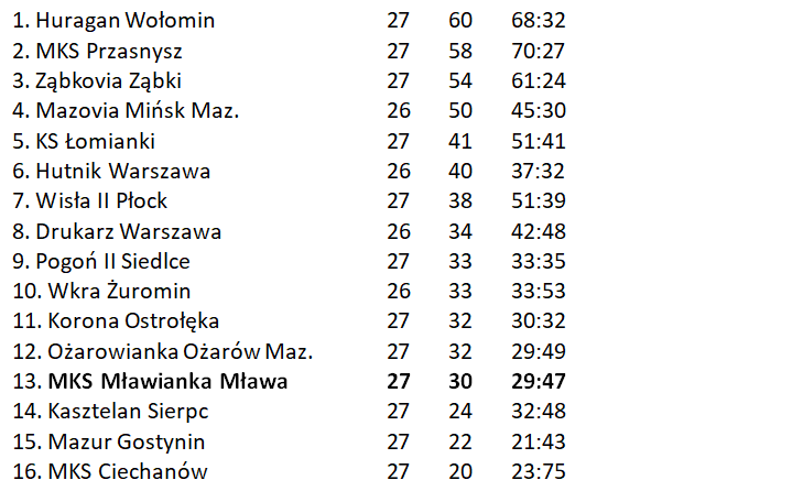 To co się na początku marca wydawało nierealne, staje się w przypadku piłkarzy Mławianki jak najbardziej do zrealizowania. Za sprawą szóstego zwycięstwa ma wiosnę są coraz bliżsi wydostania się ze strefy spadkowej. Do pełni szczęścia podopiecznym Adama Fedoruka brakuje zdobycia zaledwie dwóch punktów.