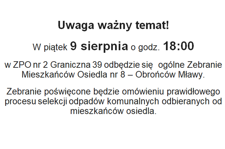 Uwaga! Zebranie Mieszkańców Osiedla nr 8