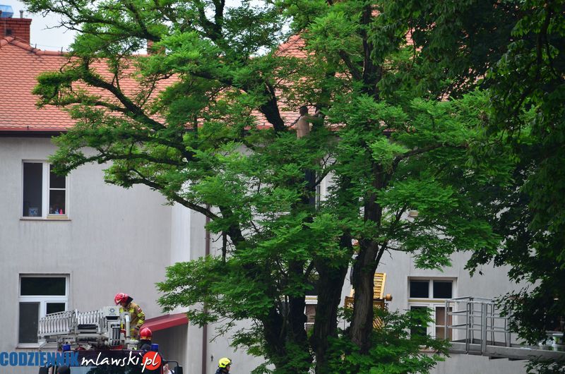 Dziś rano jeden z pensjonariuszy Domu Pomocy Społecznej w Bogurzynie wspiął się na drzewo i nie chciał dobrowolnie zejść. Ratowali go strażacy.