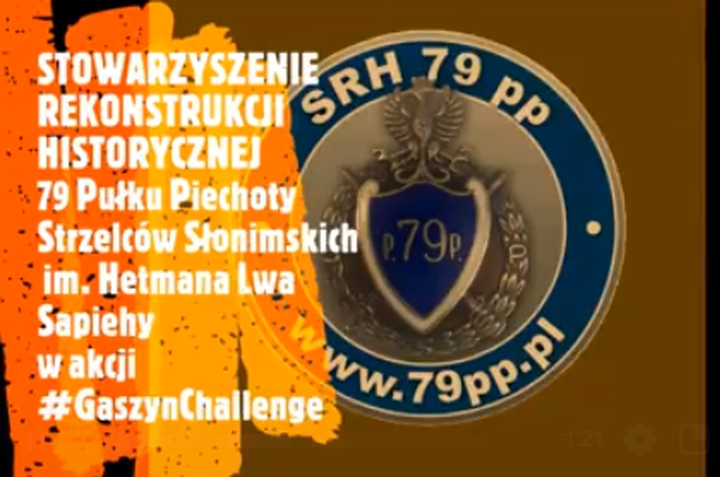 Stowarzyszenie Rekonstrukcji Historycznej 79 Pułku Piechoty Strzelców Słonimskich im. Hetmana Lwa Sapiehy przyłączyło się do zbiórki środków finansowych w szczytnym celu jakim jest pomoc dzieciom chorym na rdzeniowy zanik mięśni. Nominowani do akcji #GaszynChallenge przez Wojskową Komendę Uzupełnień w Ciechanowie wykonali zadanie pod pomnikiem Polskiego Piechura w Uniszkach zawadzkich.