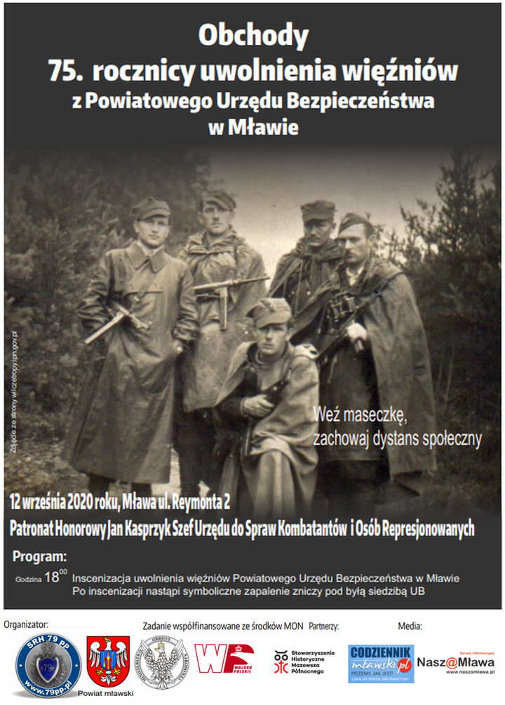 Organizowana z powodzeniem już od kilku lat przez Stowarzyszenie Rekonstrukcji Historycznej 79 p.p inscenizacja rozbicia siedziby Powiatowego Urzędu Bezpieczeństwa Publicznego w Mławie odbywała się zwykle na początku czerwca, nawiązując do rocznicy tamtych wydarzeń, które miały miejsce w Mławie w nocy z 2 na 3 czerwca 1945 r. W tym roku wyjątkowo – ze względu na rygory obowiązujące organizatorów imprez – termin inscenizacji przesunięto na 12 września.