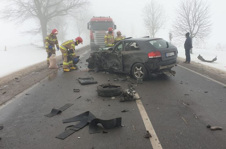 Gęsta mgła i nieostrożność kierowców doprowadziły do istnego karambolu pod Nidzicą. W sumie uczestniczyło w nim 7 aut, w tym dwa ciężarowe i karetka pogotowia. Do zderzenia doszło w poniedziałek 22 lutego na drodze wojewódzkiej W545 pomiędzy Nidzicą a Kozłowem. Mimo naprawdę groźnie wyglądającej sytuacji nikt nie poniósł poważniejszych obrażeń.