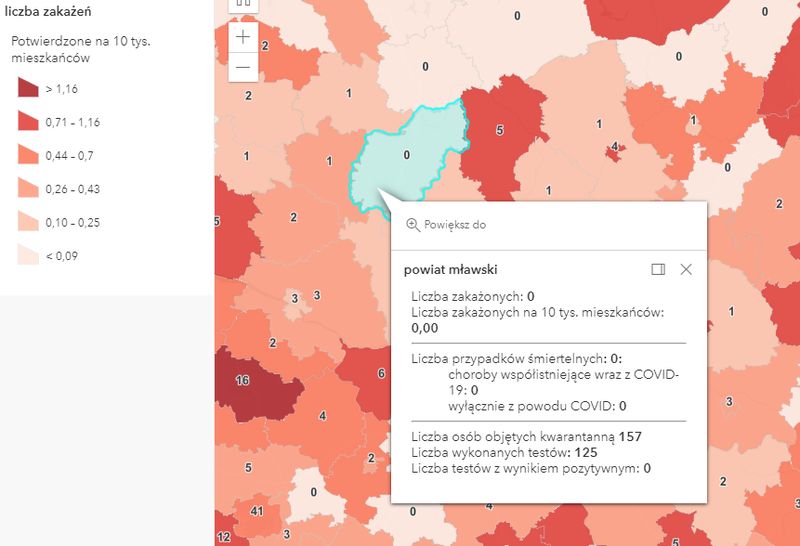 Według danych Ministerstwa Zdrowia w naszym powiecie według stanu na 20 maja br. godz. 10:30 nie odnotowano nowych zakażeń. Brak jest przypadków śmiertelnych z powodu chorób współistniejących z Covid-19 i Covid-19. 157 osób objętych jest kwarantanną, a w ciągu ostatniej doby wykonano 125 testów – z czego żaden nie jest pozytywny.
