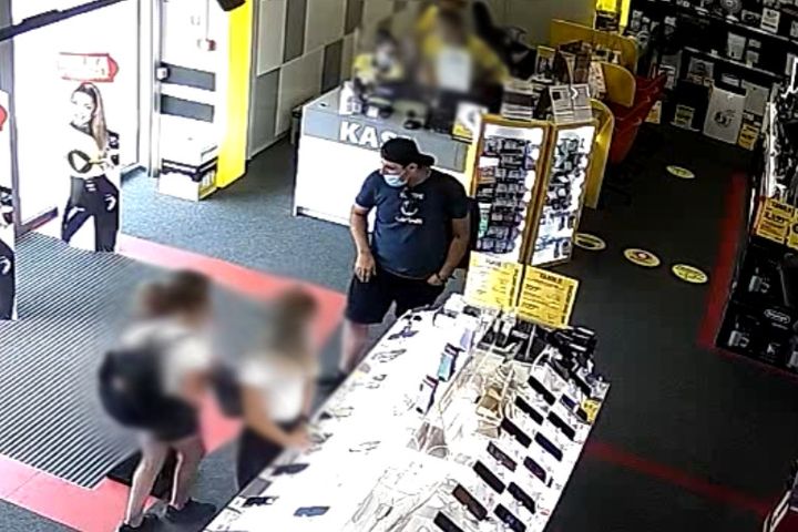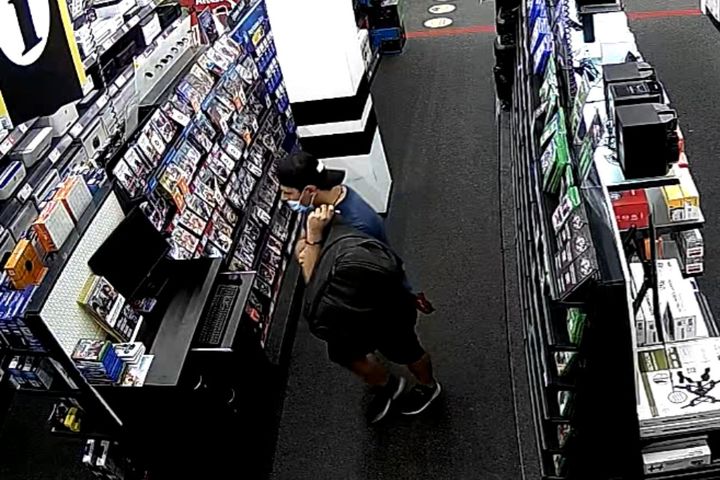 Kamery monitoringu w sklepach, zarejestrowały mężczyznę o krępej/otyłej budowie ciała ubranego w granatową koszulkę z białym nadrukiem oraz krótkie spodnie do kolan, na głowie miał ciemną czapkę, daszkiem do tyłu, z napisem NASA. Miał ze sobą duży, ciemny plecak. Mężczyzna ukradł konsole o łącznej wartości ponad 3 tysięcy złotych, w dwóch sklepach na terenie Mławy. Moment kradzieży zarejestrowały kamery monitoringu.