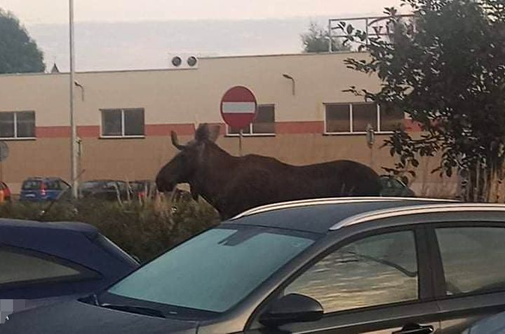 Dwa łosie spacerowały po płońskich ulicach