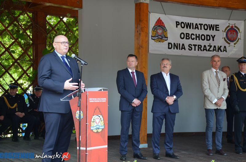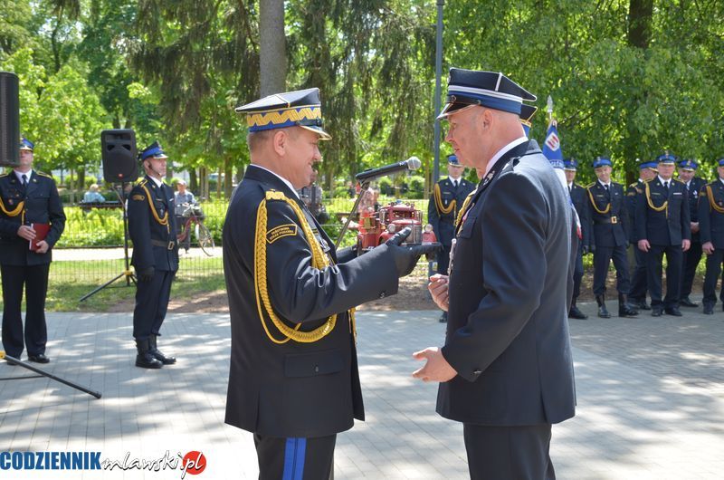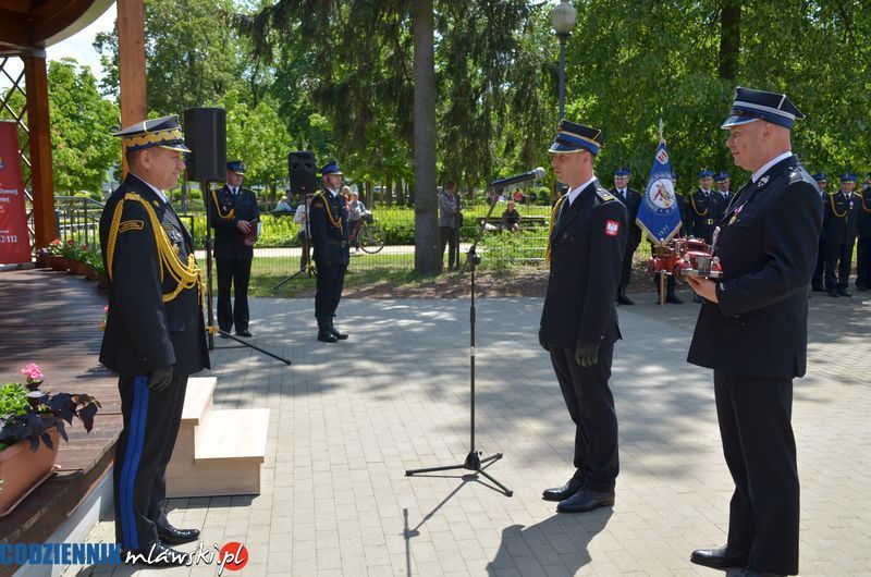 Wystawa strażackich wozów, msza św. w intencji strażaków, złożenie kwiatów pod pomnikiem marszałka Józefa Piłsudskiego, a potem uroczysty apel w parku miejskim z wręczeniem awansów, odznaczeń i wyróżnień złożyły się na program obchodów Powiatowego Dnia Strażaka i jubileuszu 30-lecia Państwowej Straży Pożarnej. Z racji współpracy na rzecz ochrony przeciwpożarowej wyróżnienie otrzymał Jerzy Kącki, redaktor naczelny Codziennika Mławskiego.