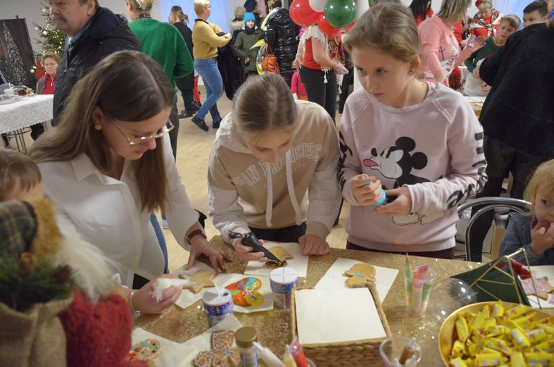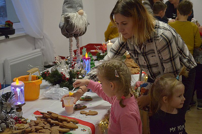 Świąteczny klimat, setki brązowych pierników na stołach, różne ozdoby, własnoręczne, fantazyjne dekoracje i ogromna radość, szczególnie tych najmłodszych uczestników, którzy wraz z rodzicami przybyli wczoraj na „Rodzinne Pierniczenie” do świetlicy wiejskiej w Bogurzynku.