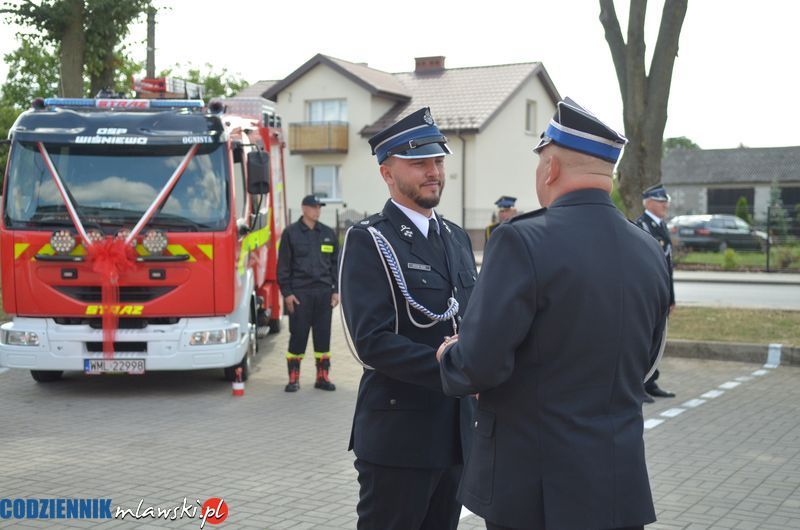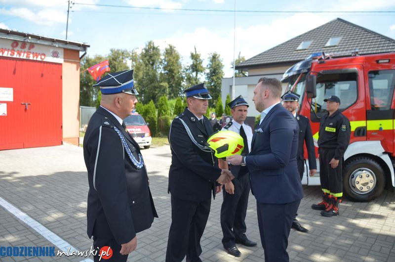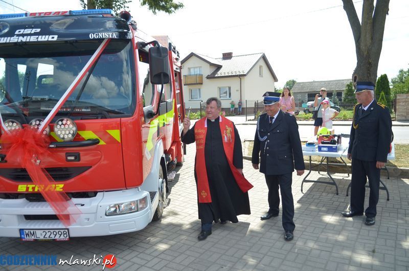Uroczystość poświęcenia zakupionego za ponad 150 tys. przez gminę średniego ratowniczo gaśniczego GBA 2/16 Renault Midlum 220 odbyła się przed strażnicą OSP w Wiśniewie, w asyście pocztów sztandarowych i druhów OSP z Podkrajewa, Kowalewa, Wyszyn Kościelnych, Dąbku, Szydłowa i Żurominka. Wśród gości znaleźli się też m.in. wiceminister i wiceprzewodniczący sejmiku Konrad Wojnarowski, przedstawiciele parlamentarzystów, komendanci PSP w Mławie – Mirosław Wójcik i w Ciechanowie – Tomasz Gajewski, prezesi OSP z gminy Wiśniewo, radni, miejscowe koło gospodyń wiejskich, proboszcz parafii Wyszyny Kościelne Marek Trymers, który poświęcił wóz oraz mieszkańcy gminy.