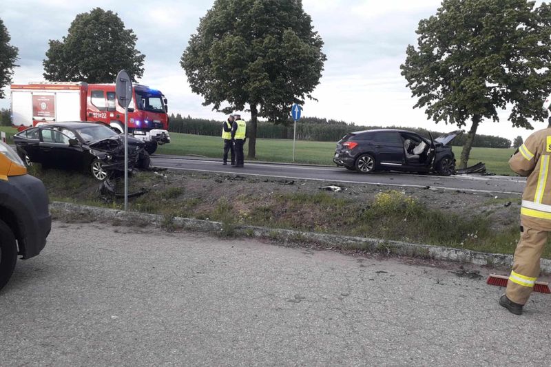Czołowe zderzenie dwóch samochodów osobowych na drodze wojewódzkiej 615 koło Stupska. Trzy osoby, w tym dziecko z lekkimi obrażeniami trafiło do szpitala, a droga na czas działań ratowniczych była nieprzejezdna.