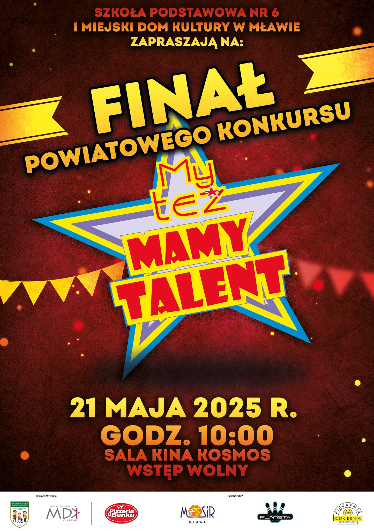 Już jutro (21 maja br). w sali Kina Kosmos w Mławie odbędzie się długo wyczekiwany Finał Powiatowego Konkursu „MY TEŻ MAMY TALENT”