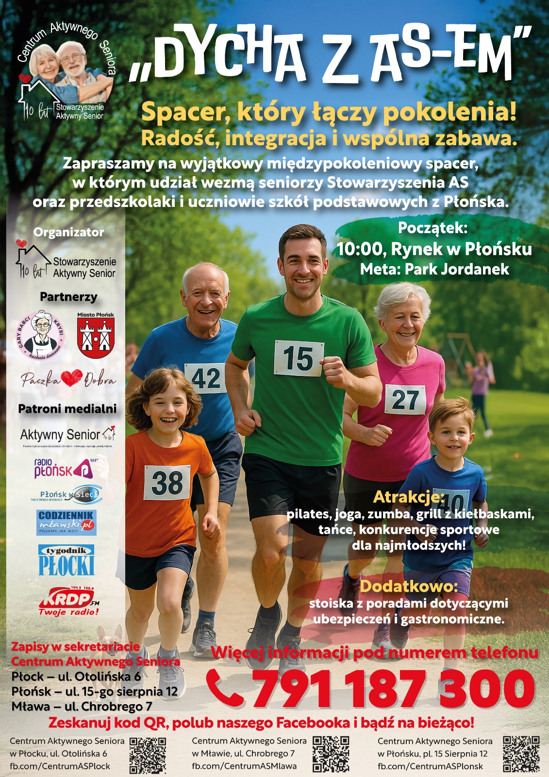 Stowarzyszenie AS oraz Miasto Płońsk zapraszają wszystkich mieszkańców na wyjątkowe wydarzenie „Dycha z ASem” – Międzypokoleniowy Spacer Seniorów oraz Dzieci. Wydarzenie odbędzie się jutro, 23 maja, o godzinie 10:00, a jego celem jest integracja i aktywizacja różnych pokoleń poprzez wspólną aktywność na świeżym powietrzu.