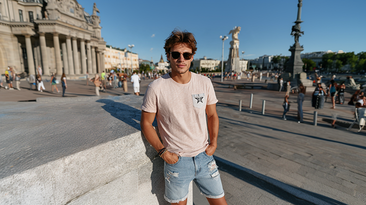 Męskie szorty jeansowe świetnie łączą się z wieloma elementami garderoby. W wersji casualowej warto zestawić je z gładkim T-shirtem, trampkami lub sneakersami oraz okularami przeciwsłonecznymi. Stylizacja będzie wygodna, swobodna i gotowa na każdą letnią sytuację. Na bardziej „ogarnięte” wyjście można dobrać do szortów koszulę z podwiniętymi rękawami, mokasyny lub buty typu slip-on. Warto pamiętać, że jeans nie musi być tylko niebieski – czarne, szare czy jasnoniebieskie wersje pozwalają tworzyć ciekawsze, bardziej zbalansowane zestawy.