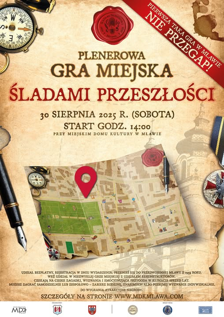 Miejski Dom Kultury w Mławie zaprasza do aktywnego udziału w miejskiej grze plenerowej „Śladami przeszłości”.