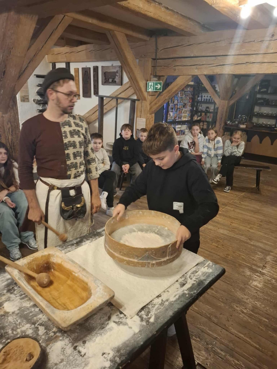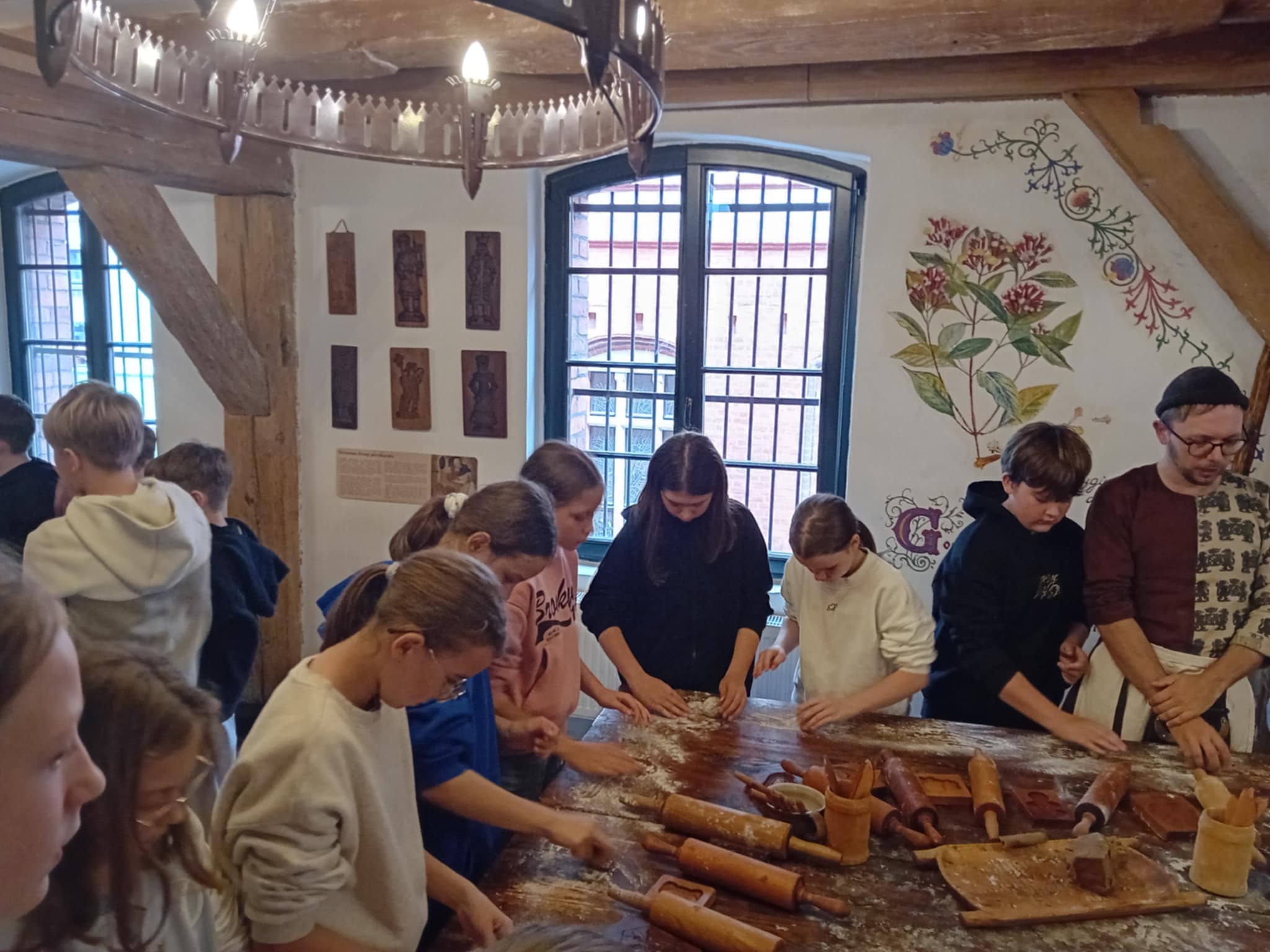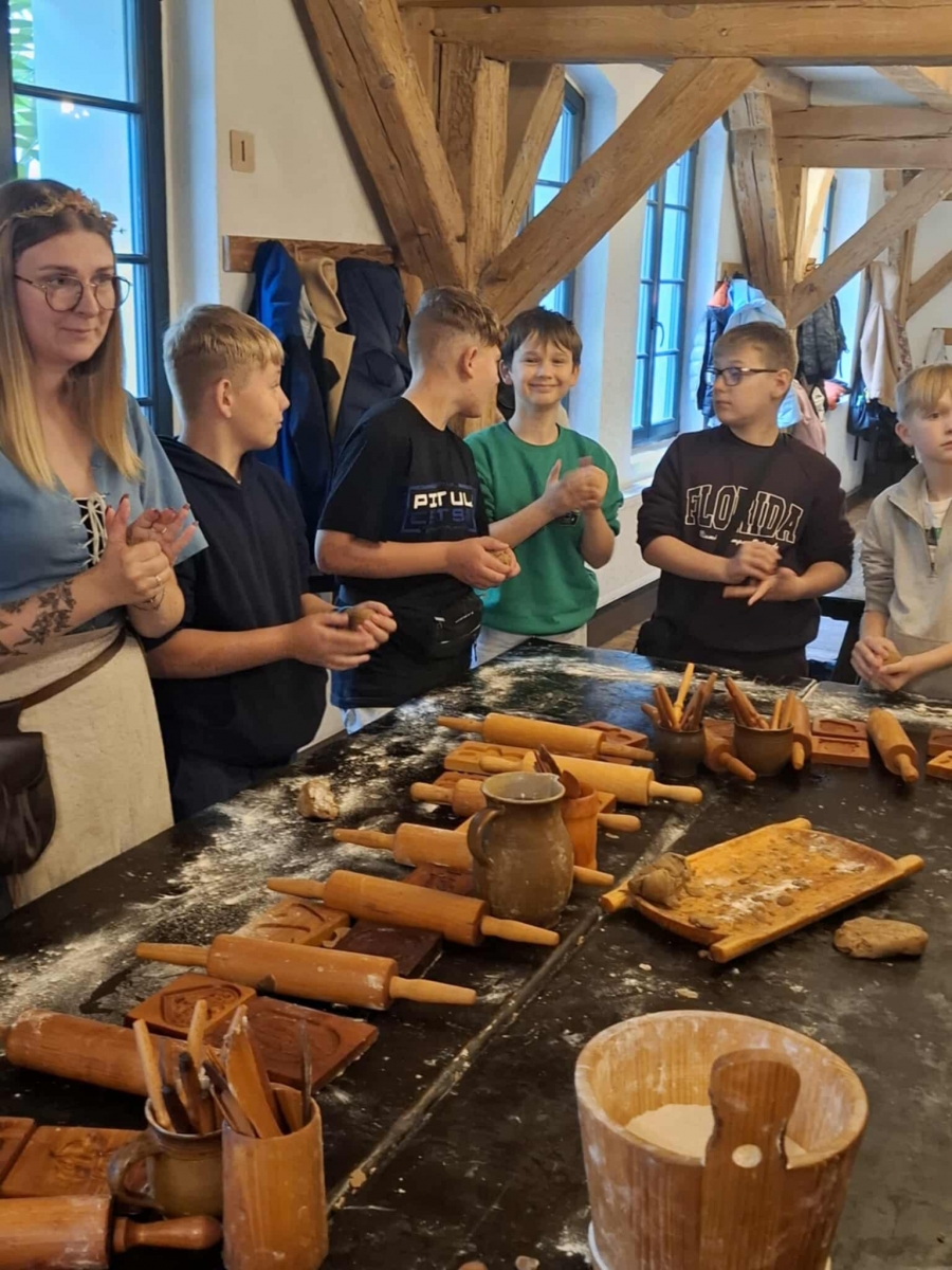 Kolejnym punktem programu było Żywe Muzeum Piernika. Podczas warsztatów uczniowie poznali historię toruńskich pierników i samodzielnie przygotowali wypieki według dawnych receptur. Zapach korzennych przypraw unosił się jeszcze długo!