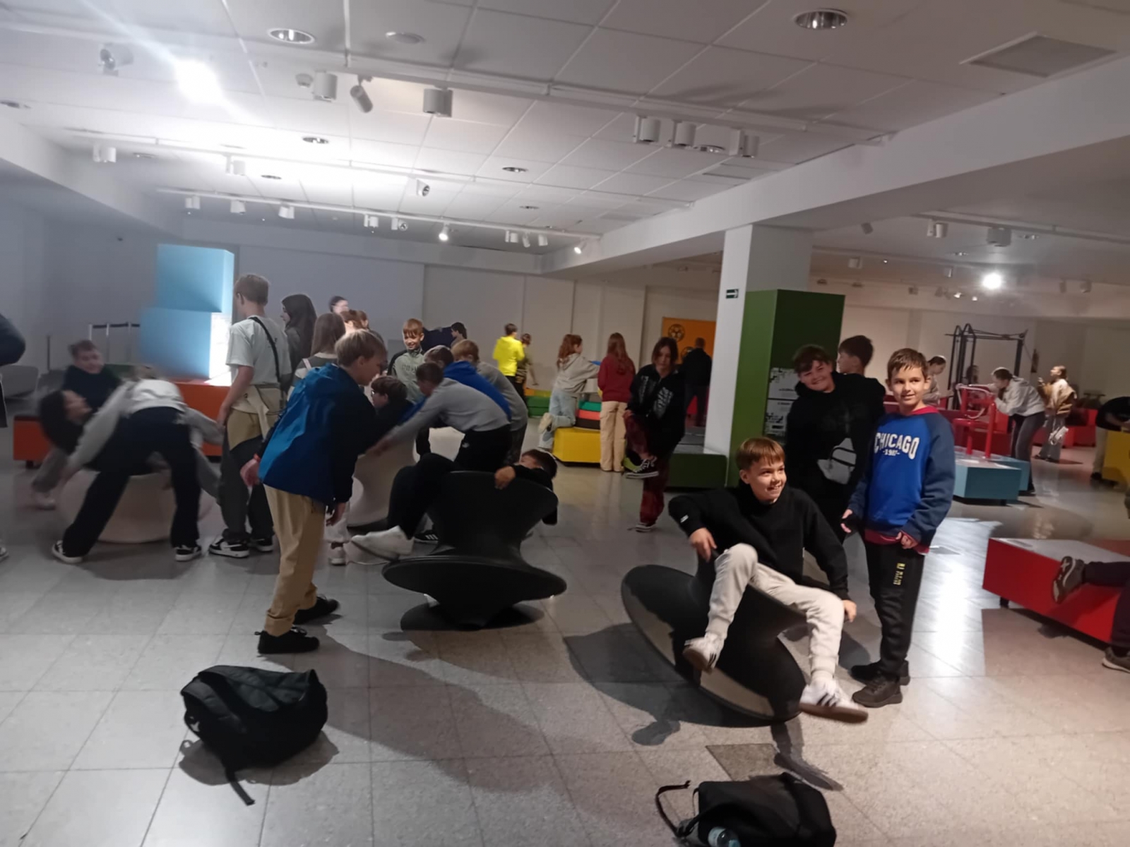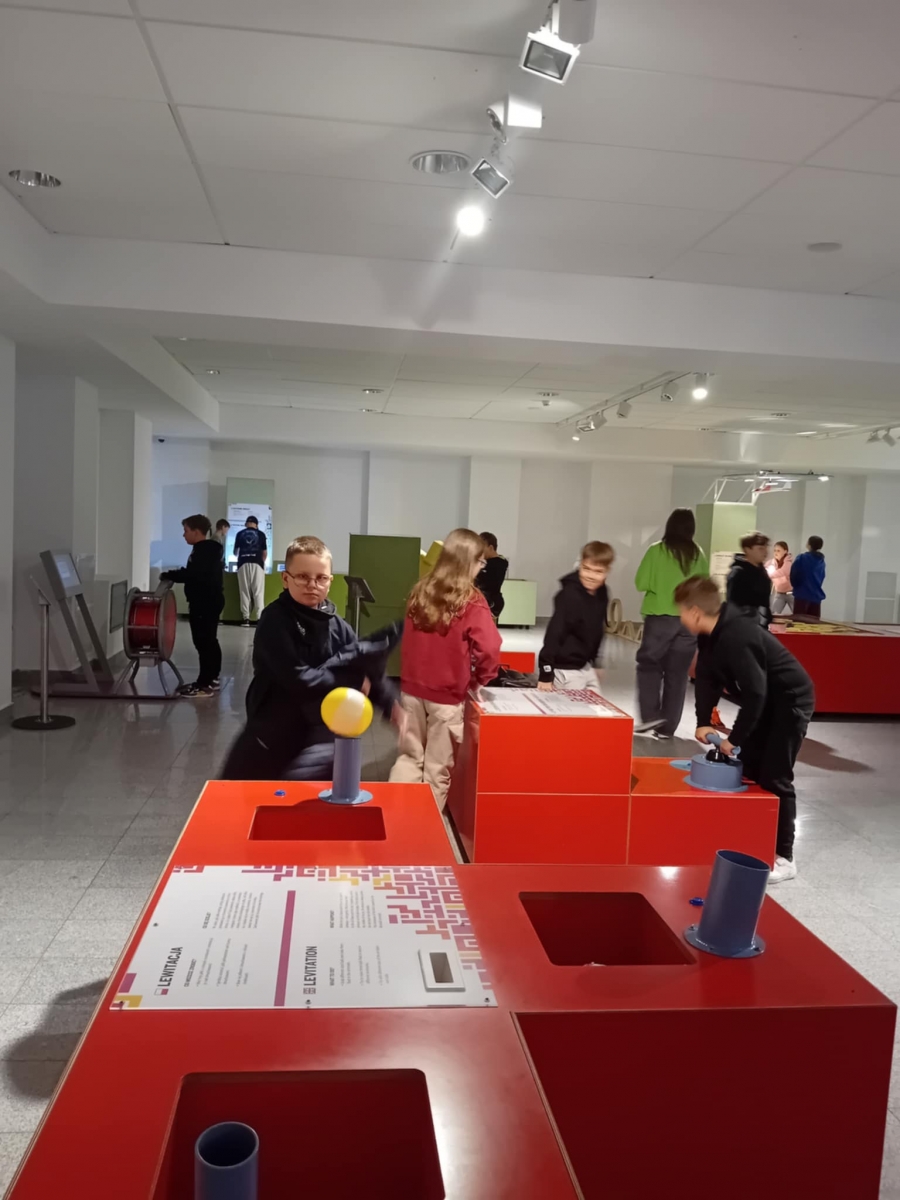 Pierwszym przystankiem było Centrum Nowoczesności Młyn Wiedzy, gdzie nauka spotyka się z zabawą. Uczniowie mogli samodzielnie eksperymentować, poznawać zjawiska fizyczne i przyrodnicze oraz rozwijać swoją kreatywność dzięki interaktywnym wystawom. Była to nauka w najlepszym wydaniu – ciekawa, angażująca i pełna radości!