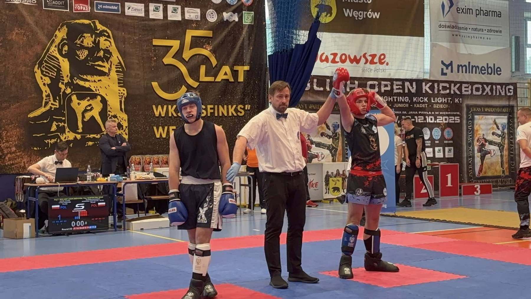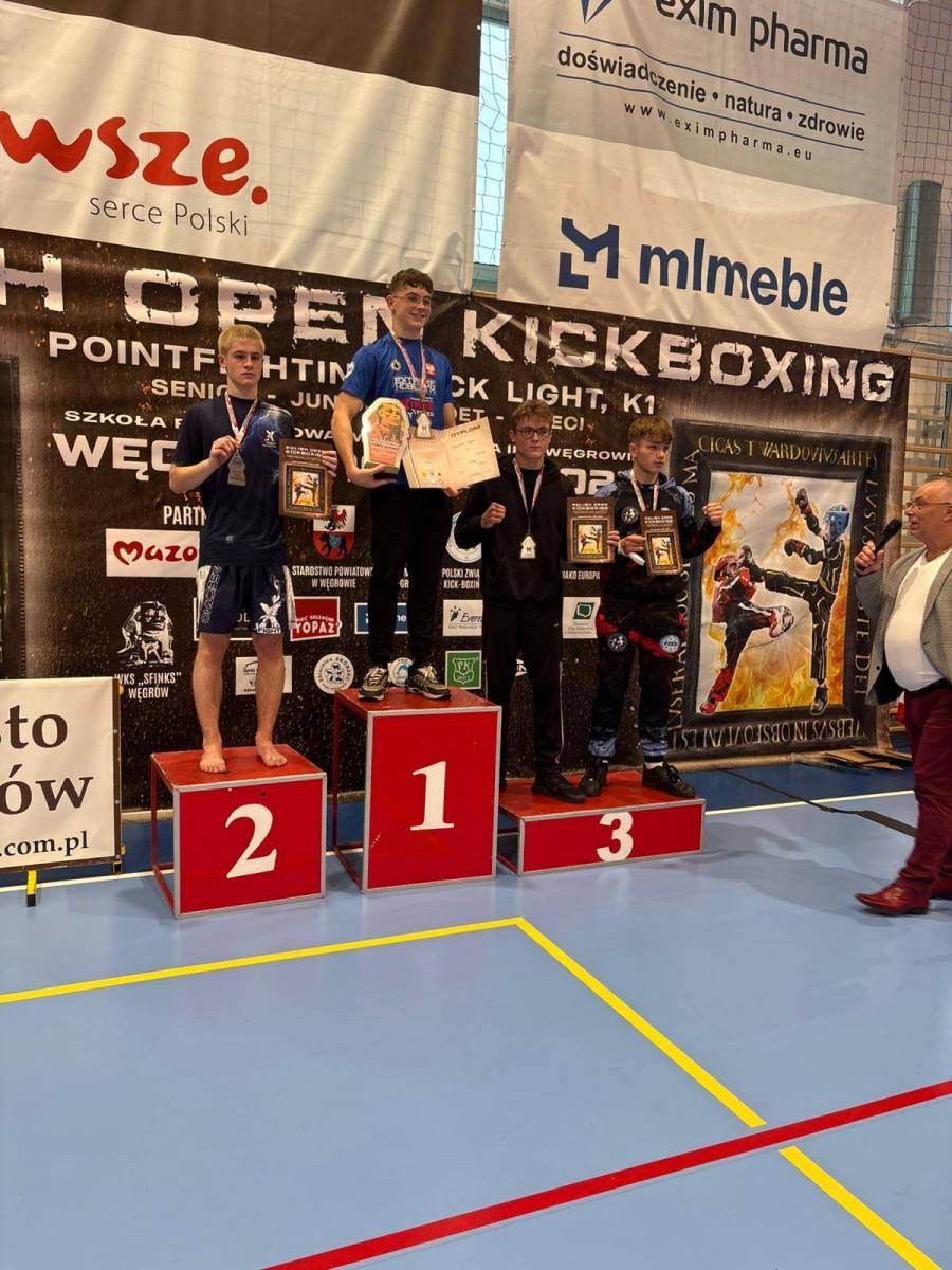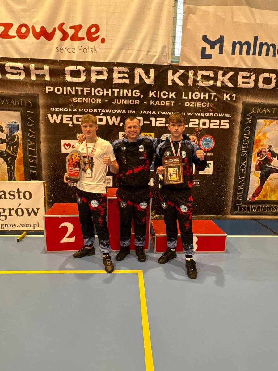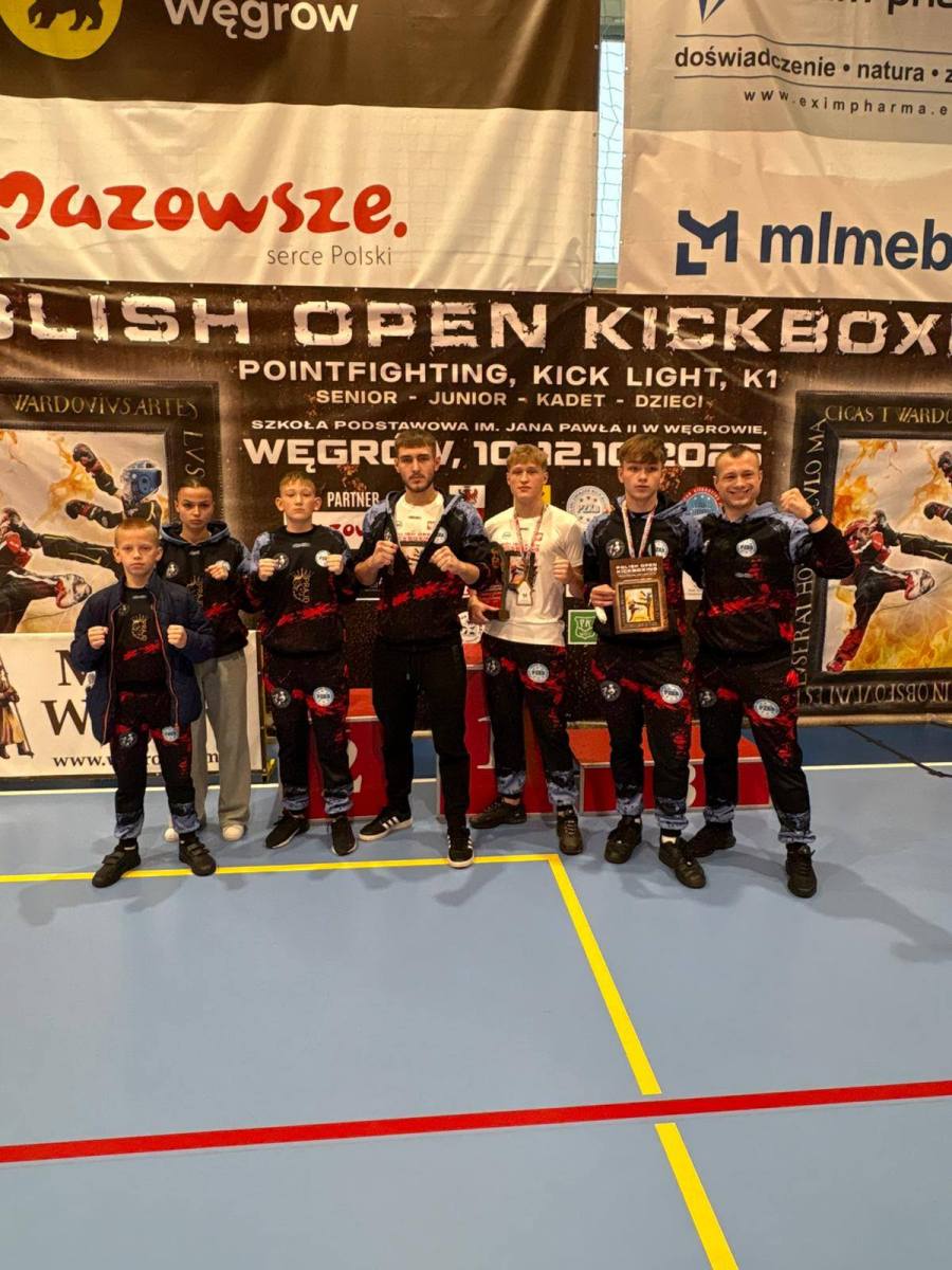 Podczas zawodów Polish Open w Węgrowie mławski klub zaprezentował się z bardzo dobrej strony. Kacper Trzaskowski sięgnął po międzynarodowy puchar w kategorii Full Contact Senior do 75 kg, a Aleksander Gajewski po zwycięskiej walce awansował do strefy medalowej. Niestety kontuzja – zwichnięcie i wybicie palca prawej ręki – uniemożliwiła mu walkę o finał, co ostatecznie zakończyło się brązowym medalem.