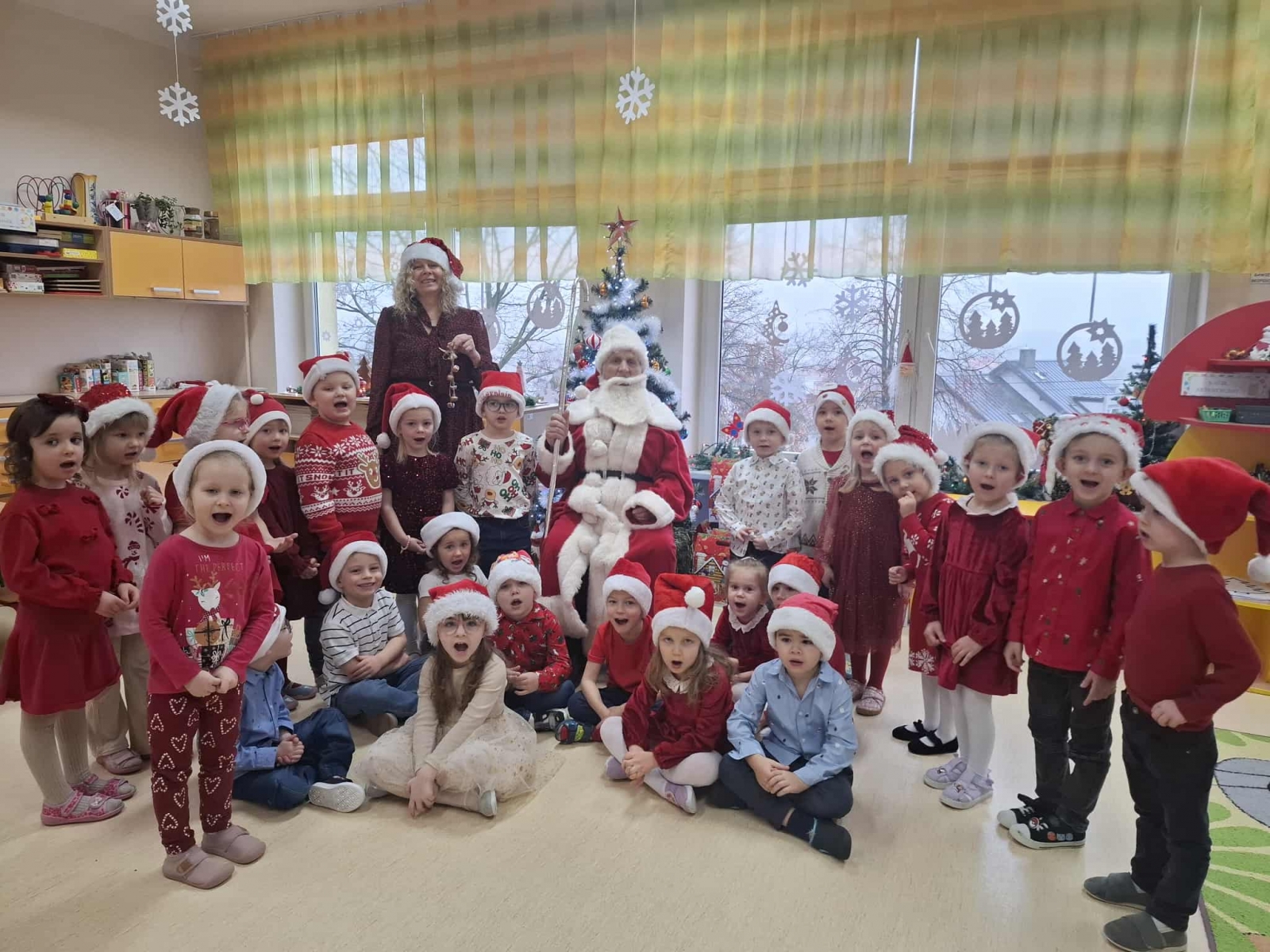 5 grudnia nasze przedszkole odwiedził wyjątkowy gość – Święty Mikołaj Już od rana w salach panowała radosna atmosfera. Przedszkolaki w czerwonych strojach i czapeczkach wyczekiwały upragnionego gościa.