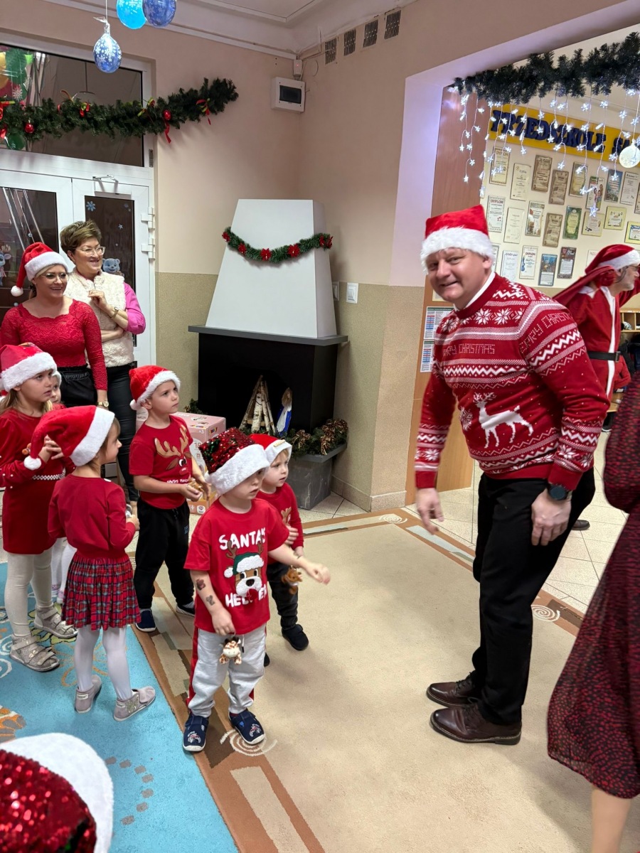 Nasze przedszkole odwiedzili również Burmistrz Miasta Mława pan Piotr Jankowski oraz Zastępca Burmistrza Miasta Mława pan Mariusz Szczechowicz wraz z przedstawicielami Urzędu Miasta, którzy złożyli wszystkim świąteczne życzenia i wręczyli dzieciom upominki oraz prezenty dla każdej z grup Wizyta Mikołaja i władz miasta sprawiła dzieciom wiele radości oraz wprowadziła wszystkich w świąteczny nastrój za co serdecznie dziękujemy. To był magiczny i niezwykły dzień.
