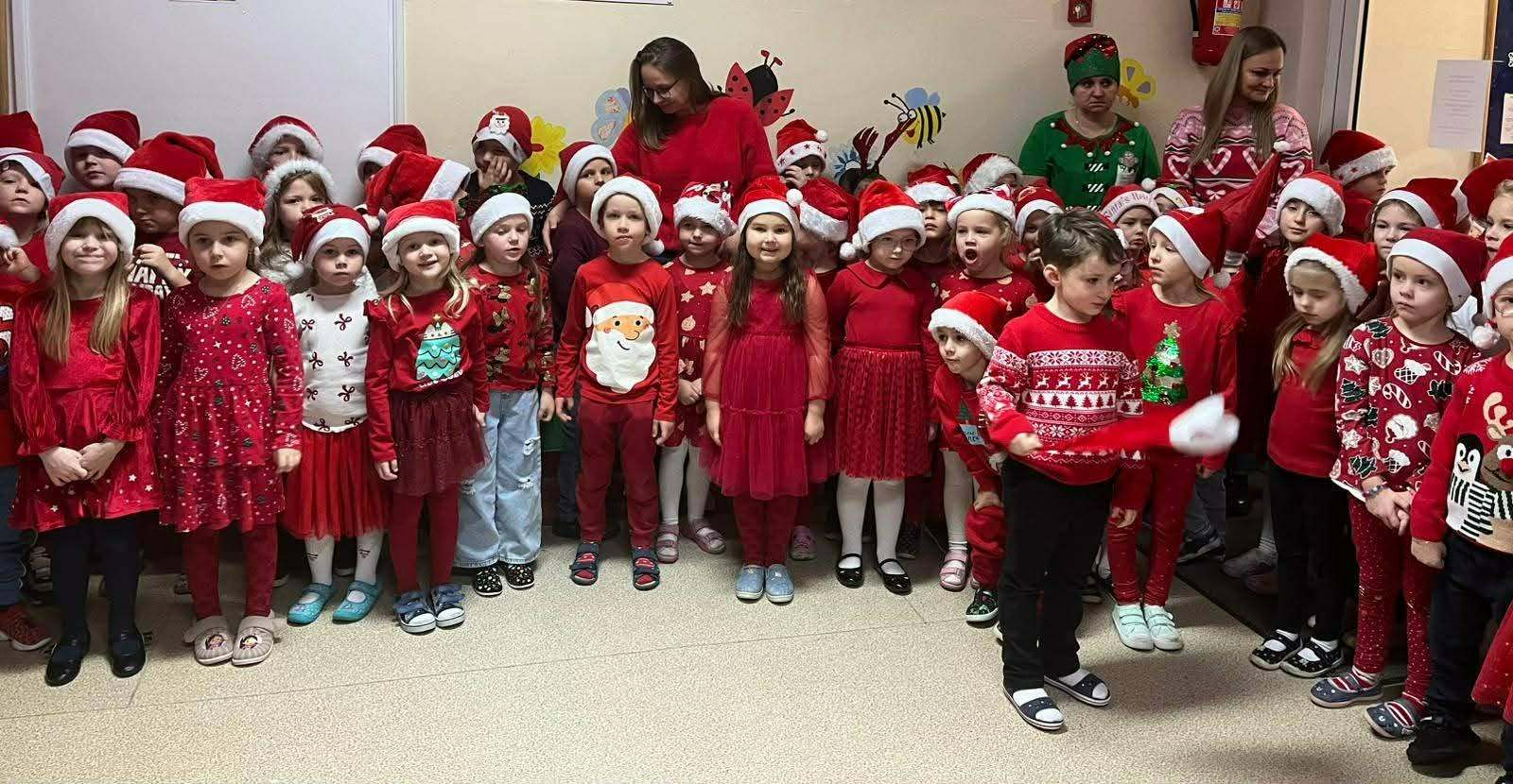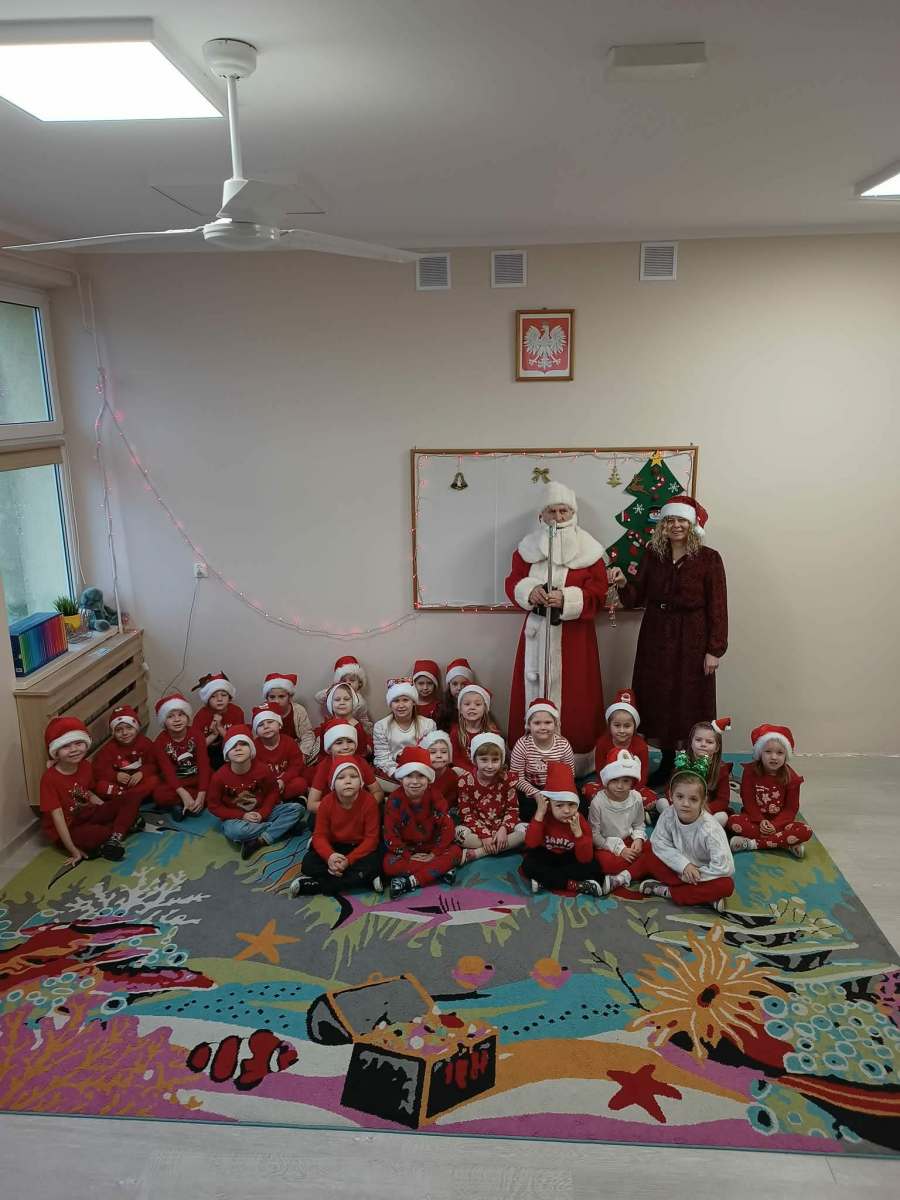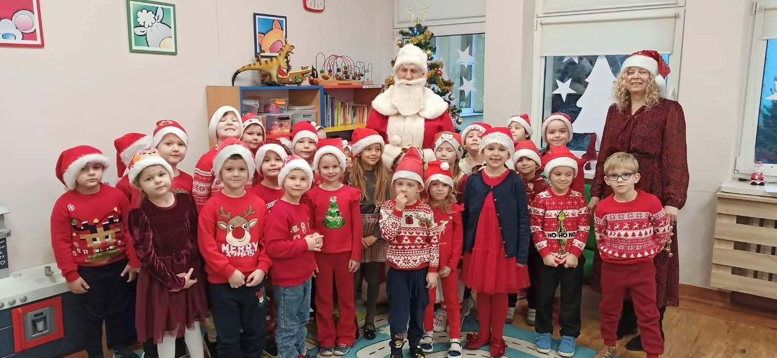 Mikołajki w naszym przedszkolu! W przedszkolu panowała prawdziwie świąteczna atmosfera! Dzieci przyszły ubrane na czerwono i z dumą nosiły mikołajkowe czapeczki. Do naszych sal zawitał sam Święty Mikołaj, który obdarował prezentami każde Dziecko.