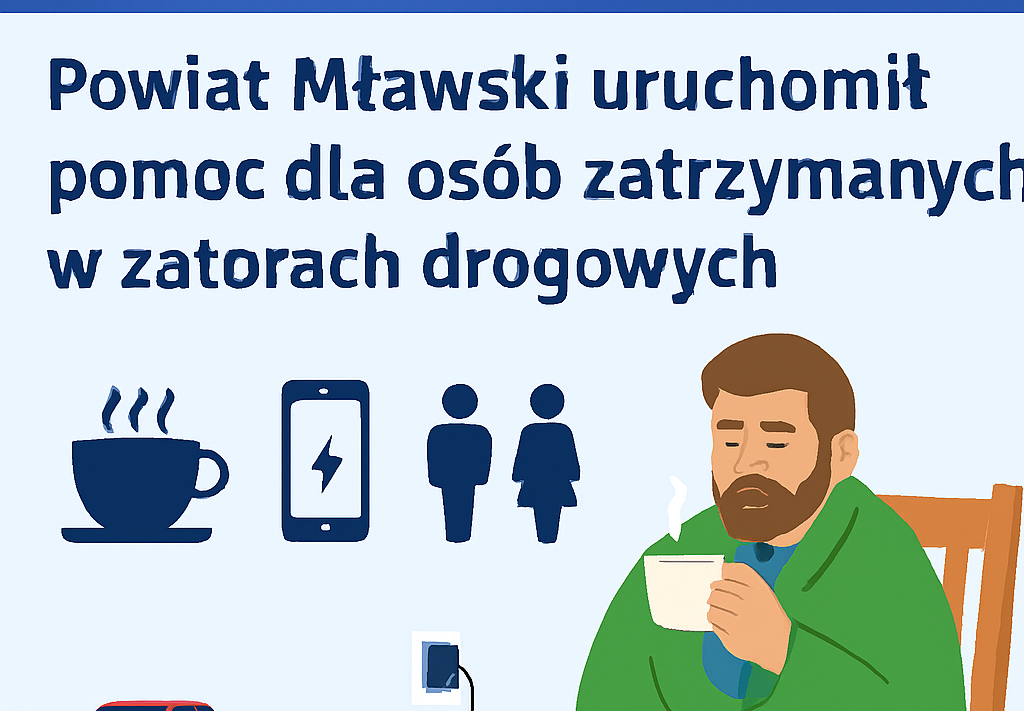 Jak można by było przetłumaczyć mi ten komunikat, to bym prosił. Zatrzymany w zaspie na drodze powiatowej, porzuca tam samochód i się przemieszcza do Bursy szkolnej na kawę i podładować telefon? Chyba chodziło o to, że Powiat Mławski uruchomił pomoc drogową dla zasypanych w zaspach, których wcześniej nie odśnieżono na drogach powiatowych. Pomaga im się z nich wydostać, częstując przy okazji kawą. Czy tak brzmi komunikat?