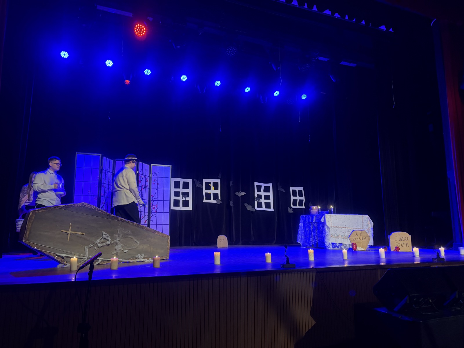 3 marca 2026r. grupa teatralna z SP 4 pod opieką p. Ewy Kuczalskiej i p. Moniki Brzozowskiej wzięła udział w XXXI Mazowieckim Przeglądzie Teatrów Dzieci i Młodzieży MASKA 2026 w Domu Kultury Świt w Warszawie, prezentując spektakl na podstawie dramatu Adama Mickiewicza „Dziady cz. II”.