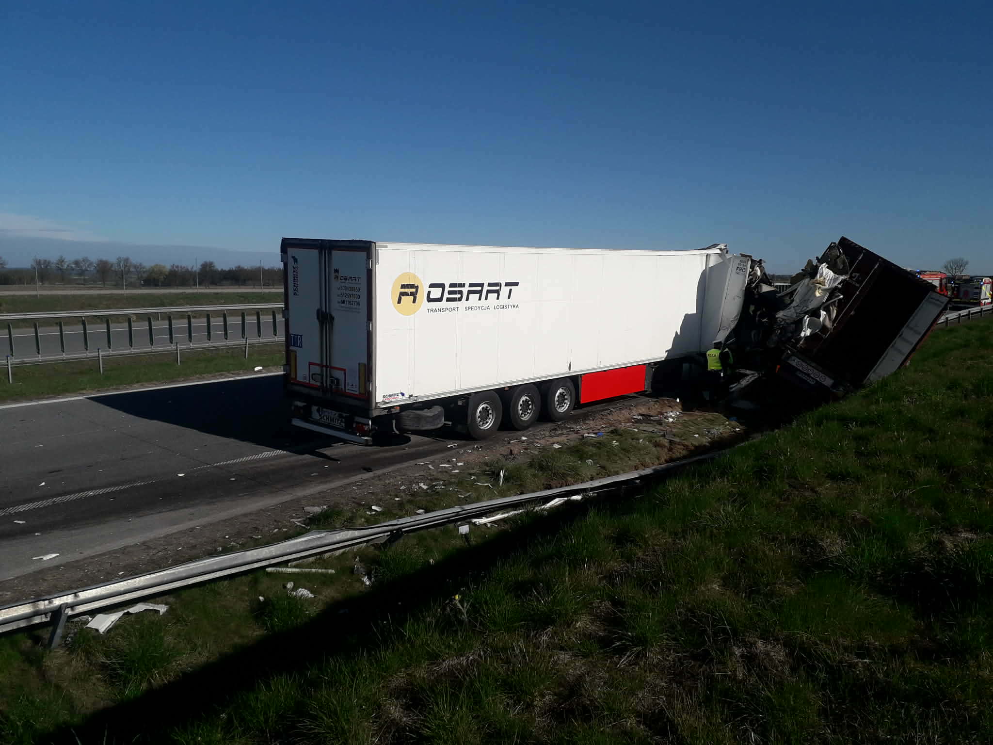 W wyniku zderzenia jedna z naczep odczepiła się i przewróciła do rowu, a kabina drugiego pojazdu została zniszczona. Ranna została jedna osoba, trafiła do SPZOZ Mława.