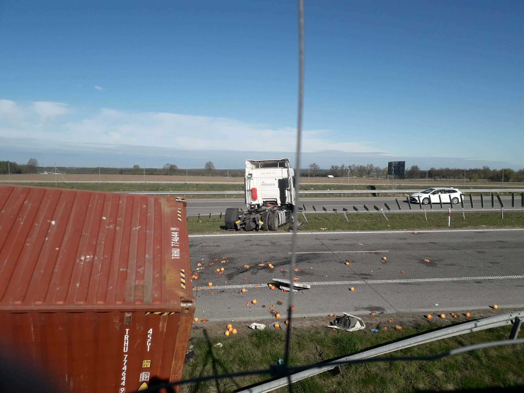 W nocy (godz. 2.20), gm. Stupsk, trasa S7 w rejonie Dąbka, w kierunku Gdańska, doszło do wypadku z udziałem dwóch pojazdów ciężarowych marki DAF.