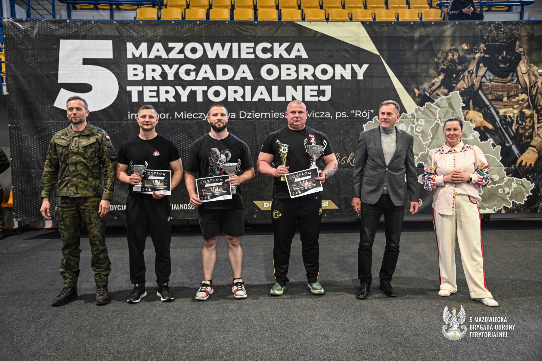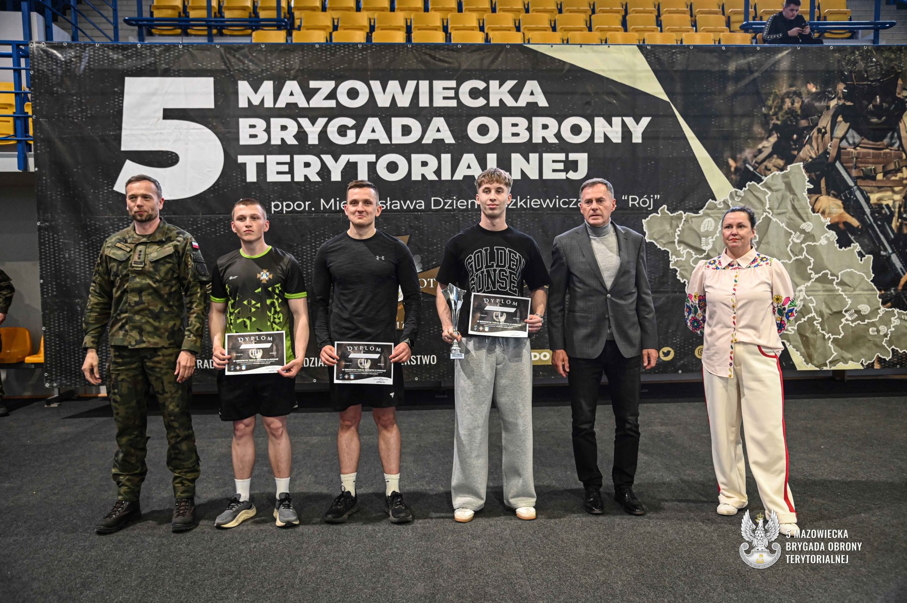 Nagrody wręczyli: Dowódca 5 Mazowieckiej Brygady Obrony Terytorialnej płk dr Paweł Lech, Dyrektor MOSiR Pan Jerzy Omieciński oraz Dyrektor I LO CN-B im. Polskich Spadochroniarzy w Ciechanowie Pani Agata Pytel.